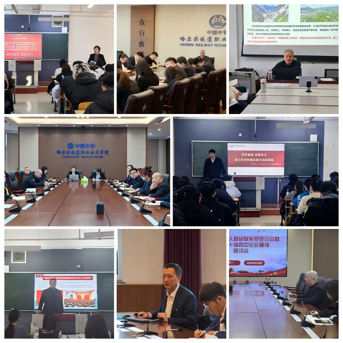 构建“校内校外联动、线上线下融合”的立体宣讲网络。组织宣讲团成员参加中国中铁党委、中铁国资党委学习宣传贯彻党的二十届四中全会精神专题视频会议,准确把握宣讲内容;邀请学院“大思政课”实践教学基地——北安市庆华军工遗址博物馆馆长吴婷作专题报告,将思政课堂延伸至红色热土,充分发挥红色资源的育人功能,推动军工精神与铁路报国情怀在哈铁学子心中同频共振、交融升华。