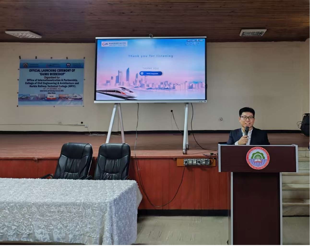 期间,我院与ASTU校方、中铁三局代表举行多轮工作会议,就完善协同机制、合作开发本土化课程与教材、师资交流、实训资源共享及专项技能培训等达成系列共识。各方一致明确,“开物工坊”将紧密对接埃塞俄比亚及东非地区基础设施建设需求,聚焦铁路、公路等领域,致力于建设成为服务当地产业、推广中国技术标准、培养本土技能人才的平台。