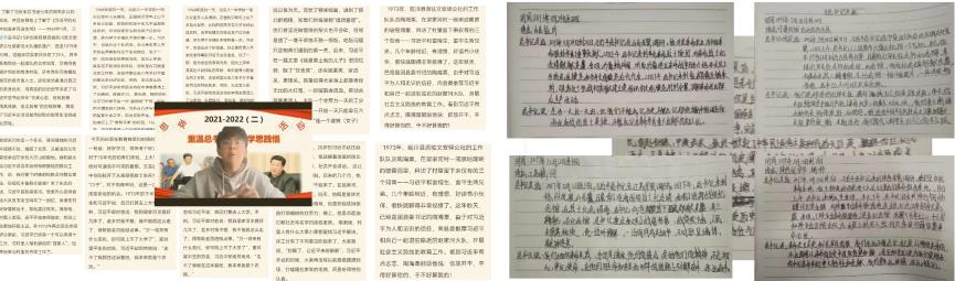 本次线上分享活动形式多样,学生从习近平的七年知青岁月、党的十八大、十九大、冬残奥会、习近平前往山东、江苏、宁夏回族自治区、延安等地考察入手,由学生制作PPT进行展示,或以小组讨论形式进行分享,亦或是通过视频等形式进行感悟,充分调动以学生为主体分享的积极性、参与感。