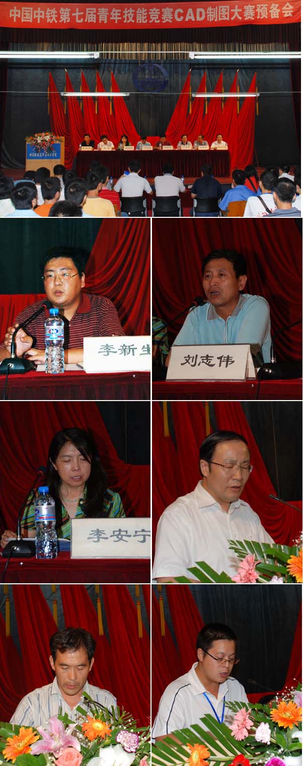 2008年8月5日下午16:30,中国中铁股份有限公司第七届CAD技能大赛预备会议在我院礼堂召开,会议由股份公司团委书记李新生主持。会前,李新生书记要求参赛18支代表队依次高喊各队参赛口号,会场气氛顿时振奋和活跃。哈尔滨铁道职业技术学院院长韩仁海首先致欢迎词,他代表中铁三局和学院向各位参赛裁判、领队和选手表示欢迎,简要介绍了学院近几年发展情况并预祝大会圆满成功。股份公司工业设备部李安宁部长宣布了比赛规则,并就具体事项提请参赛选手注意。接下来,裁判员代表,来自中铁七局的工程师张泰安做了发言,中铁四局的选手俞树荣代表参赛选手做了发言。大赛总裁判长股份公司人力资源部刘志伟部长做了重要讲话,他指出,本次大赛是体现股份公司各单位人力资源水平的大比拼,各参赛单位都十分重视,他希望选手们发挥最高水平,裁判员严格认真执法,使大赛真正为股份公司人力资源建设服务。最后各参赛单位领队进行了比赛抽签。