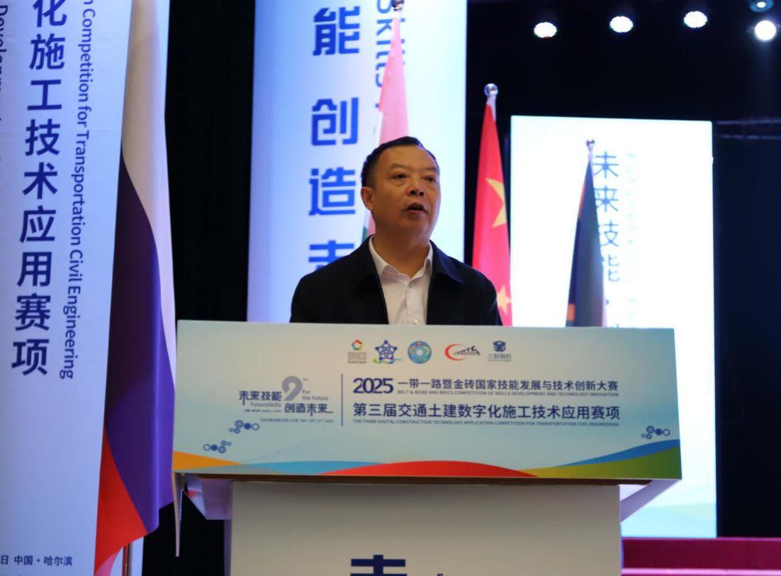 赵立新代表黑龙江省教育厅祝贺大赛举办。她指出,金砖大赛是国际教育合作与技能互鉴的重要平台,本届聚焦交通土建数字化施工,紧扣产业前沿,对培养复合型技术技能人才意义深远。黑龙江作为老工业基地与向北开放门户,积极融入“一带一路”,深化教育国际交流。省教育厅始终重视技能大赛,鼓励院校参与金砖等高水平赛事,推动技术进步与人才培养模式创新。她寄语选手赛出风格水平,院校以赛促教,深化教改,增进国际青年友谊。