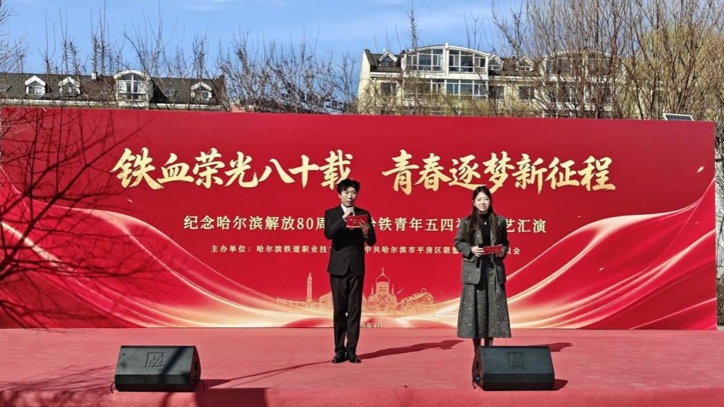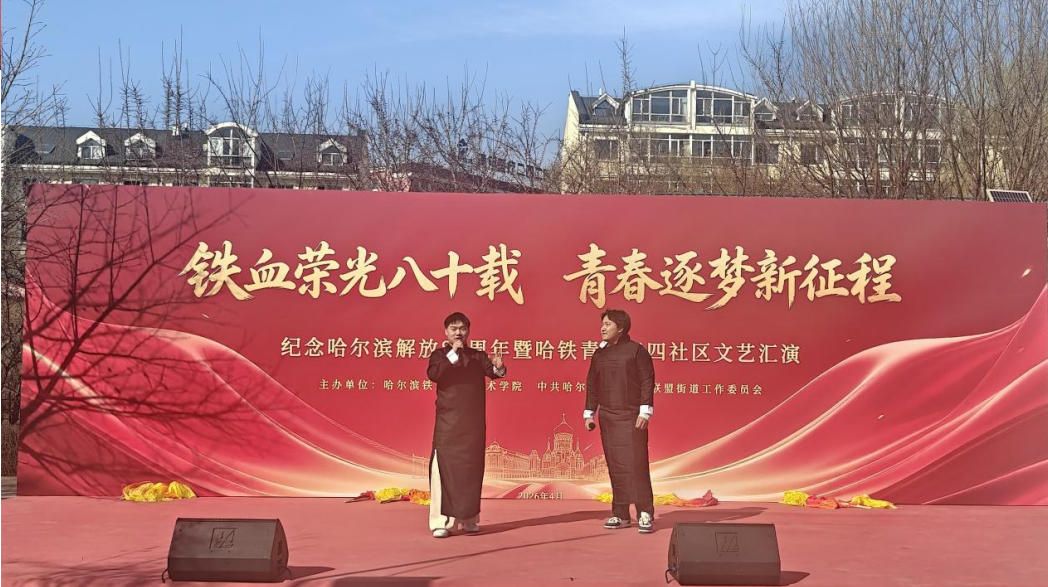 薪火相传五四魂,青春献礼城荣光。为纪念哈尔滨解放80周年,弘扬五四精神,凝聚青年奋进力量,4月23日下午,哈铁学院与平房区联盟街道工作委员会联合举办“铁血荣光八十载,青春逐梦新征程——纪念哈尔滨解放80周年暨哈铁青年五四社区文艺汇演”,哈铁青年和社区群众共赏红色青春文艺盛宴。