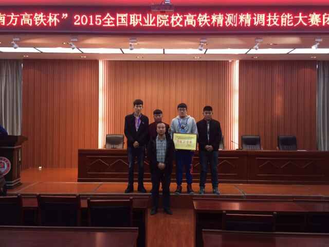 2015年11月2日在山东职业学院由全国铁道职业教育教学委员会主办,铁道工务工程专业教学指导委员会承办的“南方高铁杯”2015年全国高职院校高速铁路精测精调技能大赛圆满结束了。共有来自全国的19所铁道类高职院校参加了此次比赛,经过2天的激烈角逐,我院参赛的代表队获得了团体三等奖的优异成绩。
