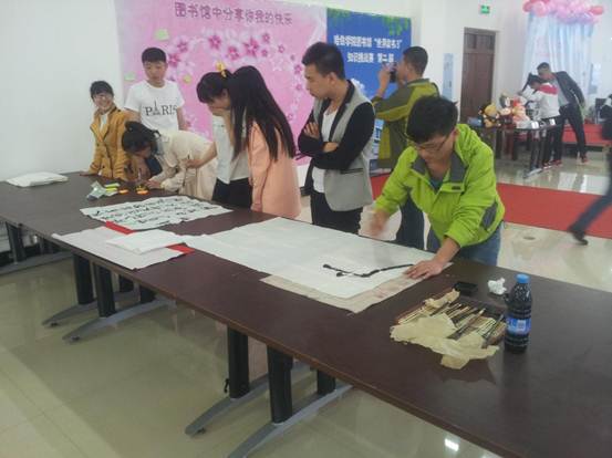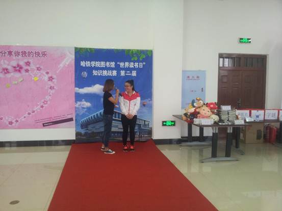 学院新闻 首页 > 新闻中心 > 学院新闻 > 正文 图书馆举办 “世界读书日”系列活动(图) 作者:日期:2015-04-28 (哈铁学院消息) 4月23日,我校图书馆以“读书丰富人生,知识创造财富”为主题2015年“世界读书日”系列活动拉开帷幕。 这次活动在第20届世界图书日来临之际,为使师生将读书成为习惯,让书香溢满校园开展的,活动包括:书法作品有奖征集,才艺自由展示,读者心声留言,知识挑战赛及游戏PK。 活动中,同学们积极踊跃的参加,场面异常火爆。通过开展 “世界读书日”系列活动,激发了我院师生的读书热情,活跃了哈铁校园文化,营造了良好的读书氛围,让师生在读书中提升自我、丰富内涵,在活动中体验读书的乐趣。 “世界读书日”系列活动现场1 “世界读书日”系列活动现场2 “世界读书日”系列活动现场3 “世界读书日”系列活动现场4 才艺展示唱歌 才艺展示书法 才艺展示绕口秀 知识挑战赛 请升级浏览器版本你正在使用旧版本浏览器。请升级浏览器以获得更好的体验。ChromeFirefoxOperaEdge
