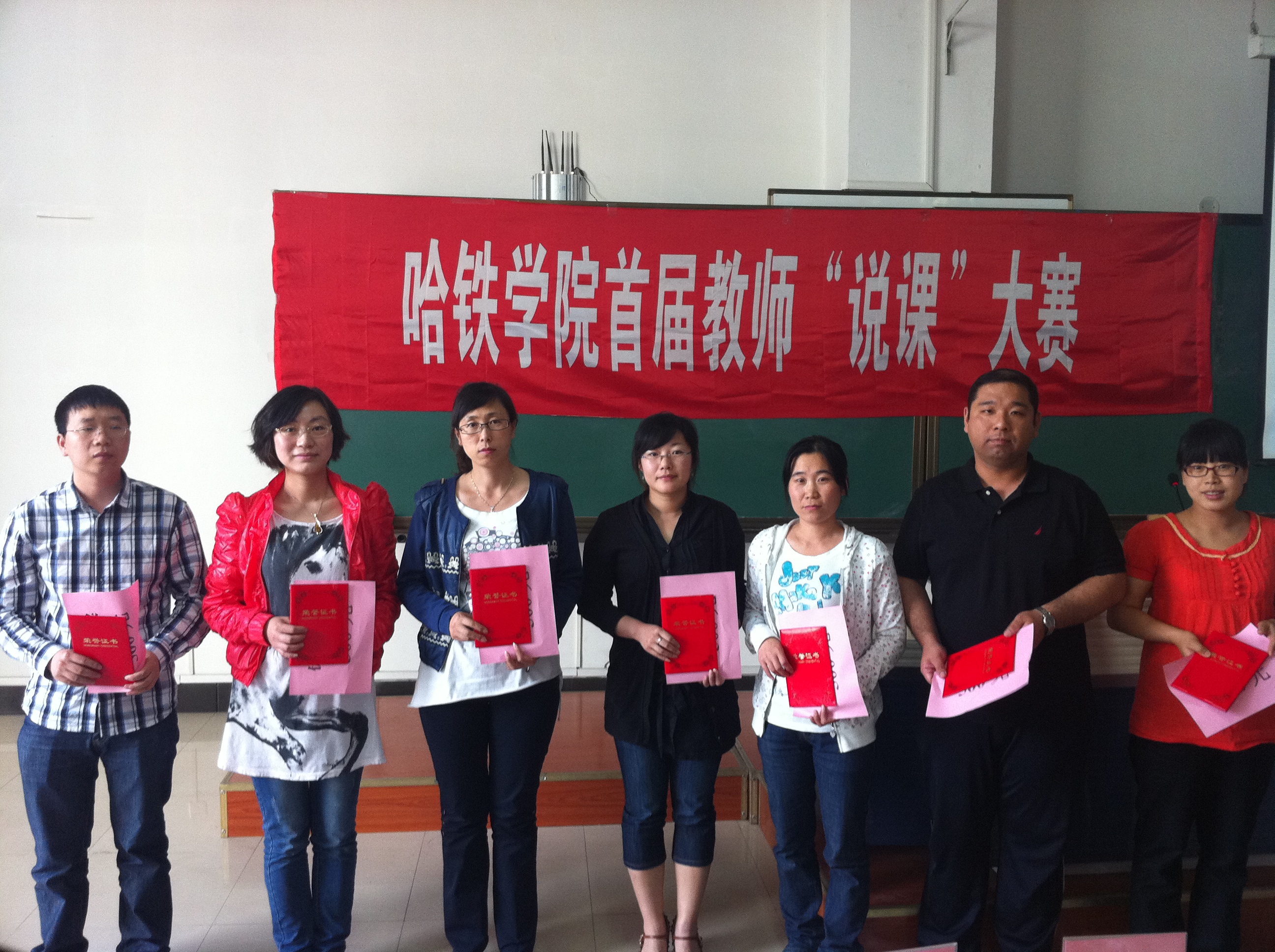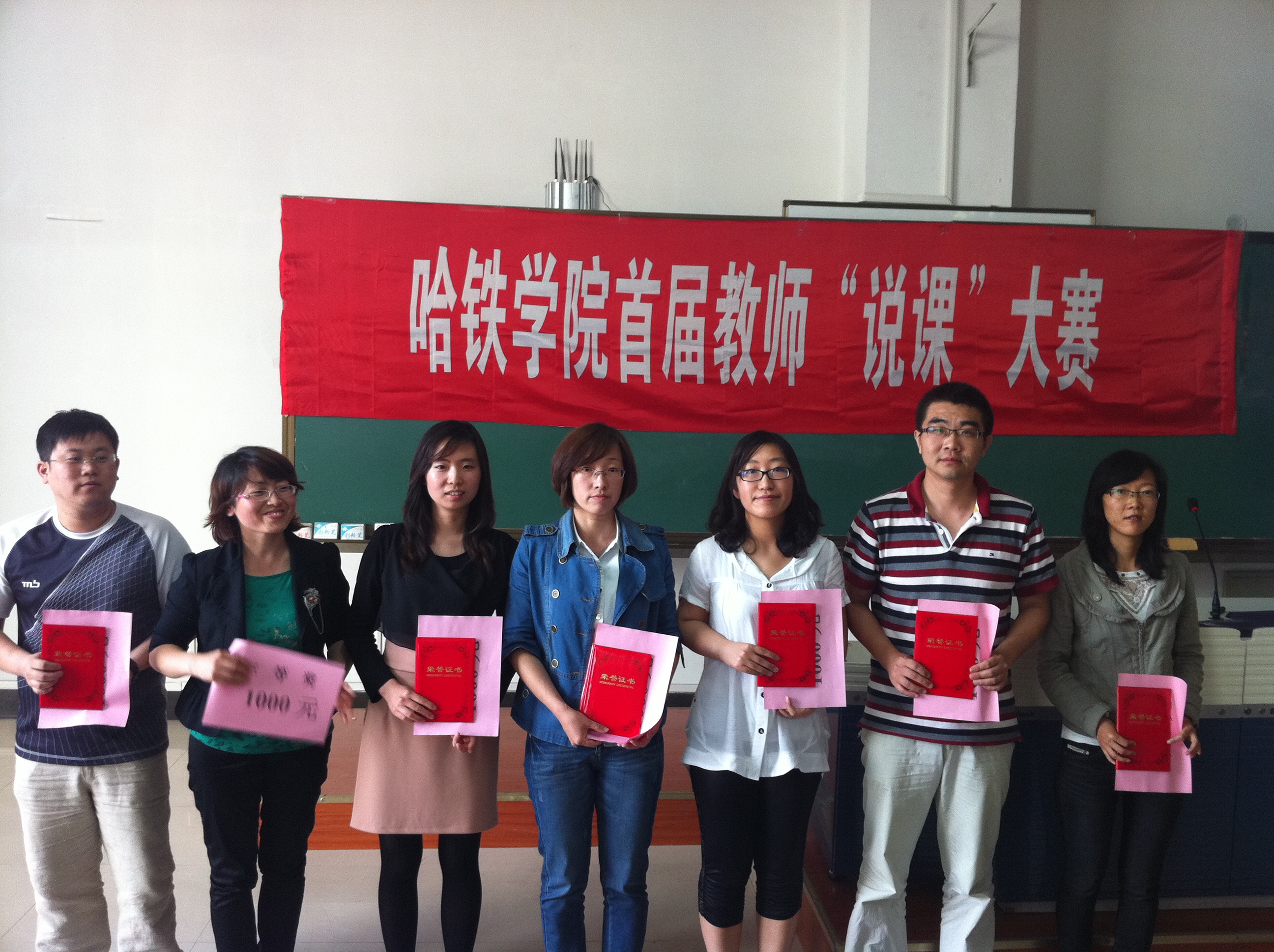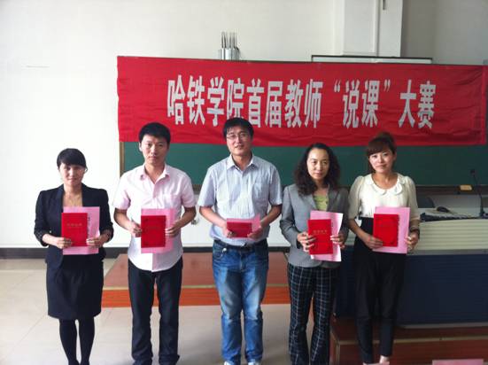 学院新闻 首页 > 新闻中心 > 学院新闻 > 正文 我院首届“说课”大赛圆满结束 作者:日期:2012-06-06 6月2日下午,哈铁学院首届教师“说课”大赛圆满结束。本次说课大赛历时2天,共有26名教师参赛,大赛由学院行政与工会联合举办,学院党委书记上官凤、教学副院长李颖、工会主席李洪涛及教学管理部门相关负责人、全体专任教师参加了本次大赛,经过评委评审,铁道建筑学院王磊获得特等奖,城市轨道交通学院夏芳、郑晓燕获得一等奖,另有5人获得二等奖,8人获得三等奖,10人获得优秀奖。 本次大赛准备充分,会场秩序良好,教师讲解全面深刻,成绩评定客观公正。通过对教师进行系统培训,教师全面、精心的准备,在赛场上针对学期讲授课程,谈定位、讲目标、举案例、说内容、说过程、说方法、说学生、说考核、作评价,促进了教师对课程的进一步理解与掌握,推动了教师业务能力的进一步提高,对本学期的课堂教学质量起到了良好的促进作用,使教师业务能力得到了提高。 图1 李洪涛主席致开幕词 图2 李颖院长致闭幕词 图3 王磊获特等奖 图4 夏芳(左)、郑晓燕(右)获一等奖 图5 二等奖获得者合影(左起孙伟、张磊、张雪、刘美茹、沈艳) 图6 张智韬说课 图7 三等奖获得者合影(左起刘熙、刘慧玲、任莎莎、姚红雪、王凤、张智韬、张巍) 图8 优秀奖获得者合影(左起郭喜春、谭宏钰、刘淑红、娄漫漫、赵萍、王爻、陈凤英)