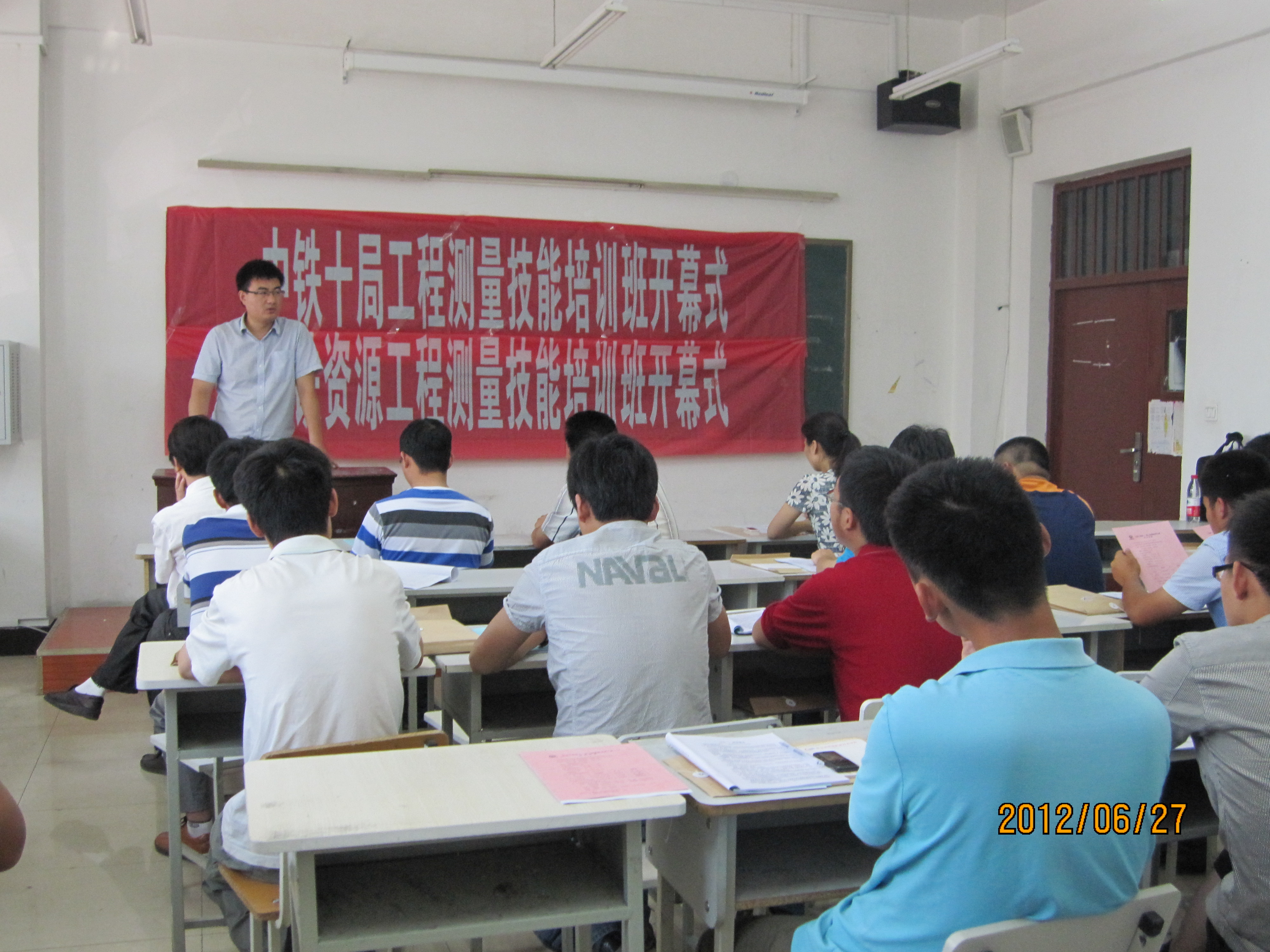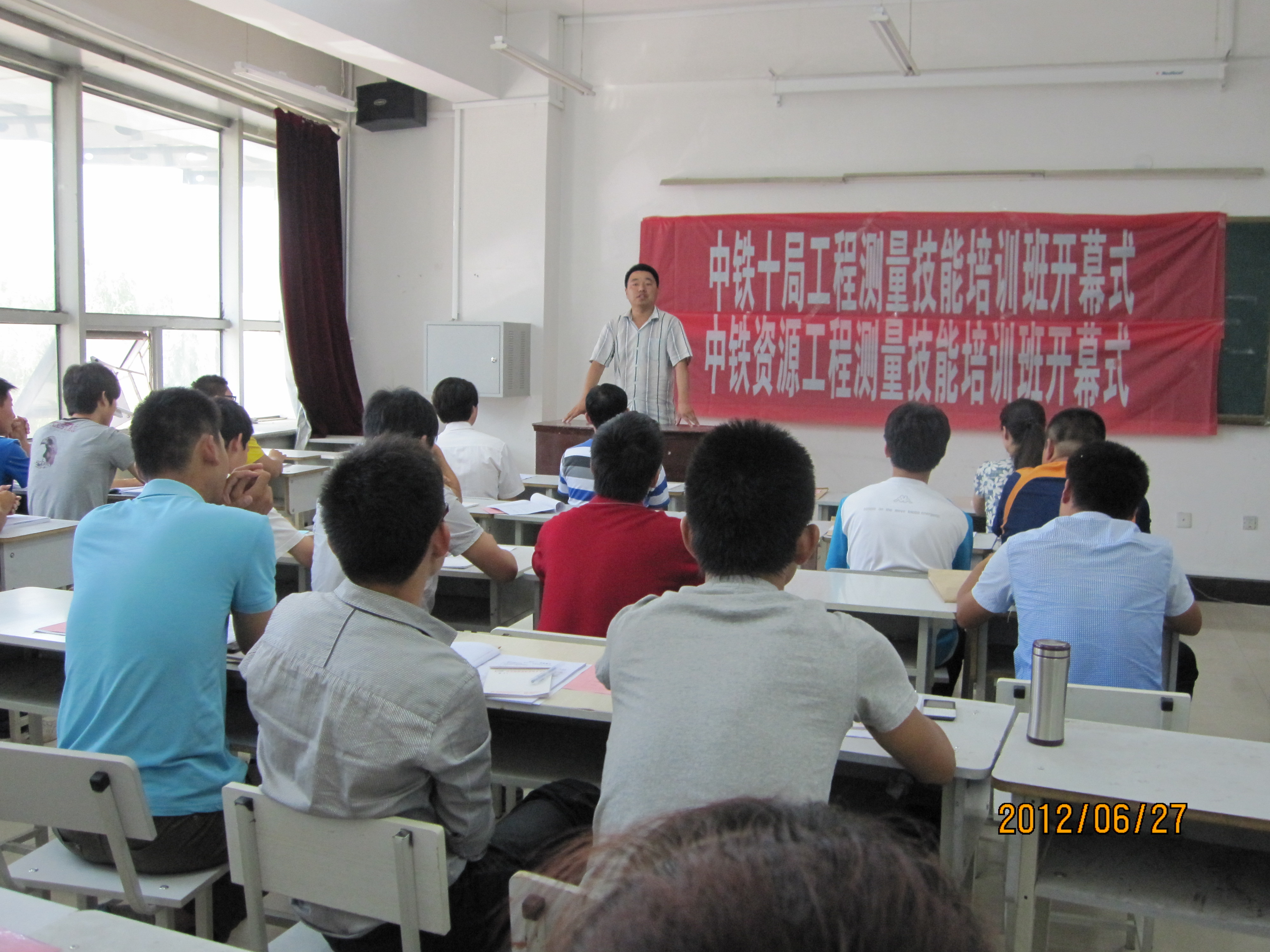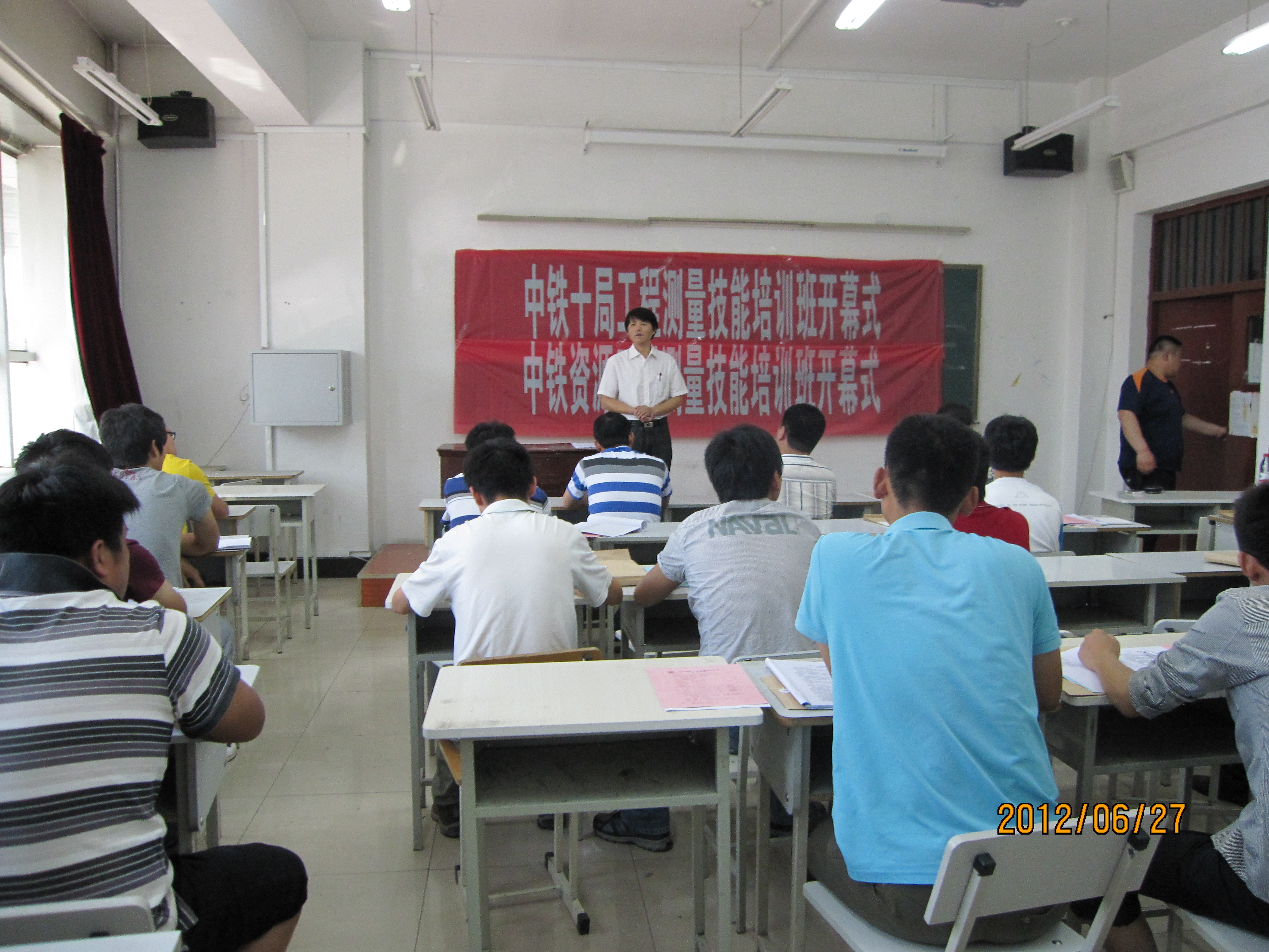 学院新闻 首页 > 新闻中心 > 学院新闻 > 正文 中铁十局和中铁资源工程测量技能培训班正式开班 作者:日期:2012-06-30 (哈铁学院消息)2012年6月27日,中铁十局集团和中铁资源集团工程测量技能培训班开班仪式在我院教学综合楼207教室举行。参加开幕式的领导有中铁十局集团团委书记马大伟,中铁资源集团高级工程师王双圣,哈尔滨铁道职业技术学院铁道建筑学院院长费学军。会议由铁道建筑分院副院长刘玉新主持。 会议首先由费学军院长致开幕辞,费院长介绍了学院的总体情况和技能培训、技能大赛的开展情况,提出了对本次培训班的期望以及对学员们的期待和对培训教师的具体要求。最后,费院长对中铁十局集团和中铁资源集团的领导、学员们致以衷心的感谢和祝愿。 会上,中铁十局集团团委书记马大伟和中铁资源集团高级工程师王双圣分别致辞,两位领导均对学院表示感谢,指出集团公司领导高度重视本次培训,希望学员提高认识,要求各位学员能够自我约束,虚心请教,切实提高测量技能。马书记和王高工均希望各位学员遵守纪律、切实学有所得、学有所获,在即将举办的第十一届青年测量大赛中取得优异成绩。 培训班开班仪式结束后,学员们正式进入了培训阶段。 费学军院长致开幕词 十局马大伟书记讲话 资源集团王双圣高工讲话 培训班开班仪式现场