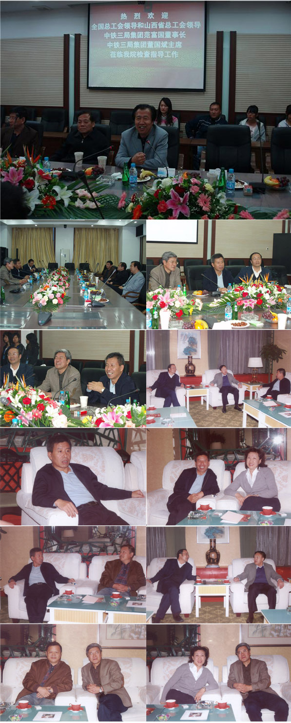 学院新闻 首页 > 新闻中心 > 学院新闻 > 正文 中铁三局集团有限公司董事长范富国会见全总、黑龙江省政府及哈局领导 作者:日期:2008-10-13 10月7日下午,集团公司董事长范富国利用在哈参加全国总工会劳动保护工作会议之机,莅临学院检查指导工作。期间,亲切会见了全国总工会劳动保护部部长汪忠汉、山西省总工会劳动保护部部长常殿军等领导,双方就全国总工会劳动保护工作会议及企业发展等问题进行了亲切会谈。之后,范富国董事长在董国斌主席、学院韩仁海院长陪同下会见了黑龙江省委、省政府、省教育厅、省建设厅、省财政厅和哈尔滨铁路局的主要领导。