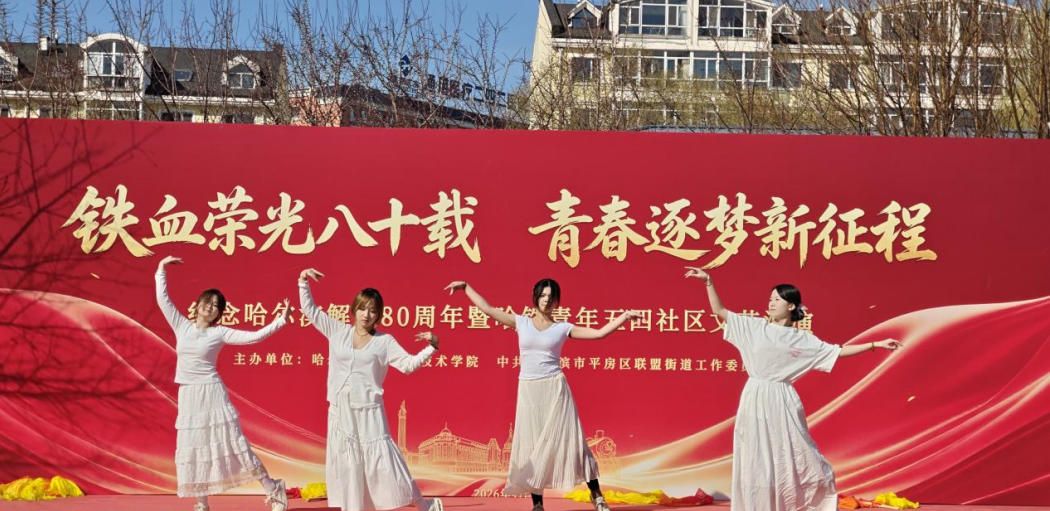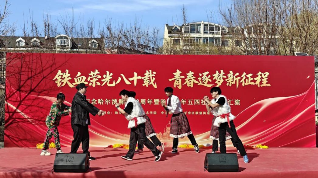 薪火相传五四魂,青春献礼城荣光。为纪念哈尔滨解放80周年,弘扬五四精神,凝聚青年奋进力量,4月23日下午,哈铁学院与平房区联盟街道工作委员会联合举办“铁血荣光八十载,青春逐梦新征程——纪念哈尔滨解放80周年暨哈铁青年五四社区文艺汇演”,哈铁青年和社区群众共赏红色青春文艺盛宴。